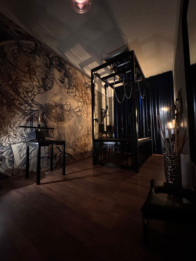 Willkommen im Red Dungeon, dem intensivsten Dungeon-Raum in unserem Domina-Studio. Dieser Raum ist sorgfältig gestaltet, um die tiefsten Gefühle der Unterwerfung und Hingabe hervorzurufen, wo du deine Hemmungen loslassen kannst.