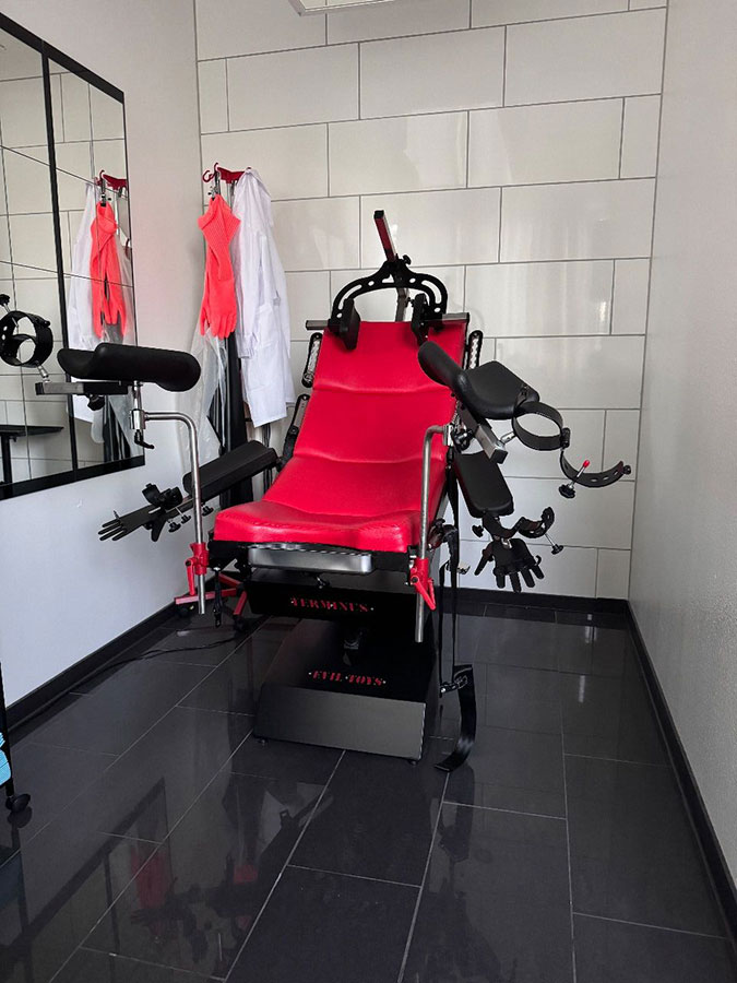 Hier verschwimmen die Grenzen zwischen klinischer Untersuchung und exquisitem Vergnügen, da unsere Dominas die tiefsten Geheimnisse deines Körpers erforschen.